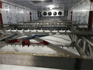 該項(xiàng)目位于摩洛哥,摩洛哥漁業(yè)資源極為豐富,沙丁魚出口居世界首位,是非洲第一大產(chǎn)魚國(guó)。我們?yōu)榭蛻籼峁┑慕鉀Q方案系統(tǒng)集自動(dòng)制冰、存冰、整平、出冰、稱重、計(jì)費(fèi)為一體,是整套的全自動(dòng)系統(tǒng)。