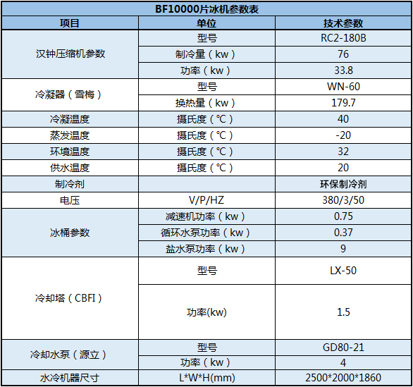 BF10000片冰機參數表