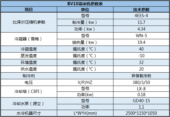 BV10袋冰機(jī)參數(shù)表