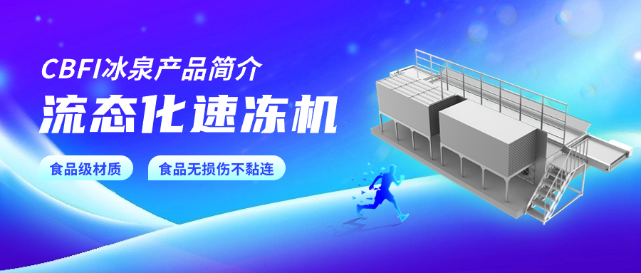 CBFI冰泉流態(tài)化速凍機,產量1000~5000千克/小時,主要適用于蔬菜水果等顆粒狀、片狀、塊狀、丁狀食品的單體凍結。