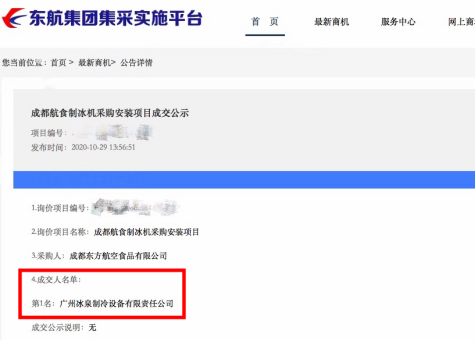 暨冰泉方冰乘坐廣州南聯(lián)航的飛機(jī)上天后,這次,冰泉又憑借其強(qiáng)勁的綜合實(shí)力,以絕對(duì)優(yōu)勢(shì)中標(biāo)東方航空食品投資有限公司制冰機(jī)競(jìng)價(jià)采購(gòu)項(xiàng)目。